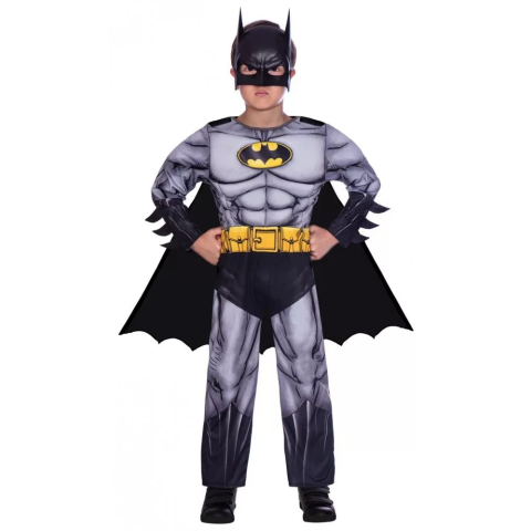 Batman jelmez 6-8 év Tartozékok: - kezeslábas - 3D maszk - köpeny Anyaga: 100% poliészter
