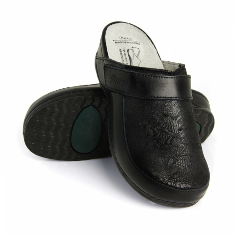 Valódi bőrExtra könnyű, rugalmas talpszerkezetCserélhető talpbetétKonfekció cserebetétek:Csere talpbetét,5 Zónás talpbetétMindkét cserebetét esetében egy mérettel kisebb szükséges a papucs méretéhez képest!Batz Elena női klumpa: szuperkényelmes és csinos darab, nőies formák és felsőfokú komfort egyszerre. Válogatott minőségű valódi bőrből készült, cserélhető talpbetéttel és a már jól megszokott anat