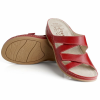 Batz Eni női papucs pirosban. Tradicionális, több mint 10 éve gyártott, folyamatosan fejlesztett modell, 100% valódi bőr felsőrésszel és talpbéléssel. Anatómiai kialakítású talpszerkezete maximális kényelmet biztosít a lábnak. 2 állítható tépőzáras pántjának köszönhetően bősége széles tartományban állítható, majdnem minden típus