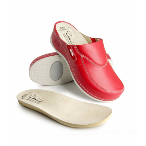 Könnyű női papucs, kivehető, mosható, cserélhető talpbetéttelBatz egyedi talpbetétfogadására alkalmas modellKonfekció cserebetét:Csere talpbetét100% valódi, válogatott minőségű bőrBatz FC10 női klumpa piros színben. A Batz klumpák klasszikus darabja, a manufaktúra zászlóshajója, csak jót tudunk mondani róla. Ideális viselet nnek, ha állómunkát végez, mert estére sem fogja fájlalni lábait. Könnyű viselet, a vajpuha bőr szinte simogatja bőrét, a benne lév