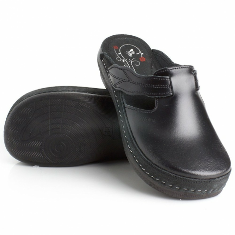 100% valódi bőr felsőrészA kikészítési technológia sajátossága: kissé ráncos, bőr felsőrészAnatómiai kialakítású talpszerkezetNormál fejbőségű modellTöbb színbenBatz Flower női papucs fekete színben. 100% valódi bőr felsőrésszel készült női klumpa. Anatómiai kialakítású párnázott talpszerkezete maximális kényelmet biztosít a lábnak. A talpbélés marhabőrből készült, mely maximálisan elszívja az esetleges lábizzadás során keletkező nedvesség