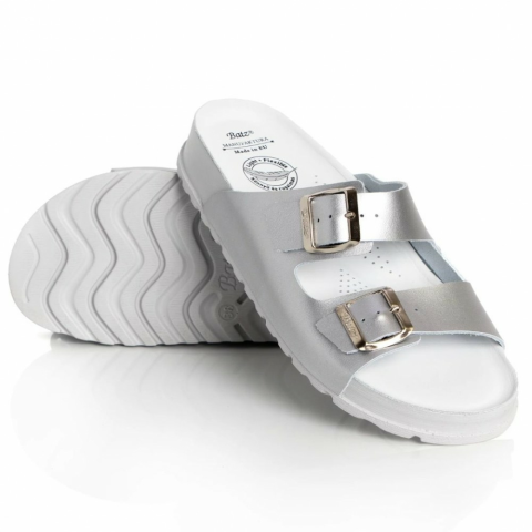 Valódi bőr felsőrészExtra könnyű, rugalmas talpszerkezetFlexibilis talpllítható pántBatz Zamira silver női papucs. Kétségtelenül az eddigi legfényesebb Batz lábbeli, ezüst színe miatt. Letisztult szín, letisztult vonalvezetéssel, mégis egy aprócska csavarral, egy csipetnyi csillogással, mellyel minden szett tökéletes kiegészítője. Legyen az irodai elegáns viselet vagy laza póló/blúz farmerral kombinálva. De mi a helyzet a talppal? A könnyű és könnyen hajló, r