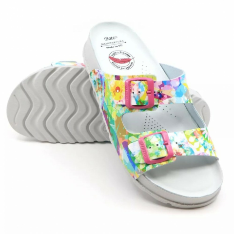 Valódi bőr felsőrészExtra könnyű, rugalmas talpszerkezetFlexibilis talpllítható pántBatz Zamira festival női papucs. Egy nagy ugrás a nyárba, csupa könnyedség és vidámság. Romantikus stílus, fesztiválhangulat és színes minták, jellemzik ezt a gyönyörű lábbelit, ami már csak arra vár, hogy kipróbáld. Rózsaszín, pink, lila, citromsárga, kék, némi zöld és fehér színek játéka, amely feldob minden outfit-et. Legyen az letisztult, egyszínű ruha vagy bohókás