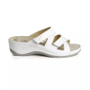 Batz Evelin női papucs fehér színben. Kiváló minőségű, valóban kényelmes viselet, egyrészt az anatómiai kialakítású, cserélhető talpbetétnek, másrészt az állítható tépőzáras pántoknak köszönhetően. Ön is szeretni fogja ezt a papucsot, ha az átlagnál szélesebb lába van, és igényli a stabil tartást. Akkor is örülni fog, ha korábban hordott már Batz Eni modellt, mert az Evelin elnevezésű Batz modell n
