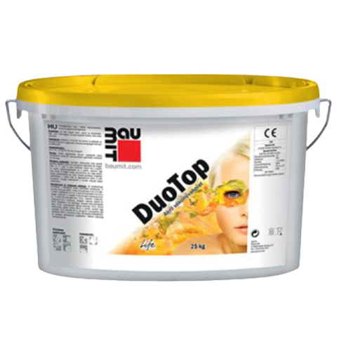 2-ES SZÍNCSOPORT - BAUMIT DUOTOP AKRIL VÉKONYVAKOLAT - 25KG Műgyanta kötőanyagú, feldolgozásra kész homlokzati vékonyvakolat. Elsősorban polisztirolos hőszigetelő rendszerekhez alkalmazzák, de felhordható bármilyen alapvakolatra is. Baumit Life 758 színéb