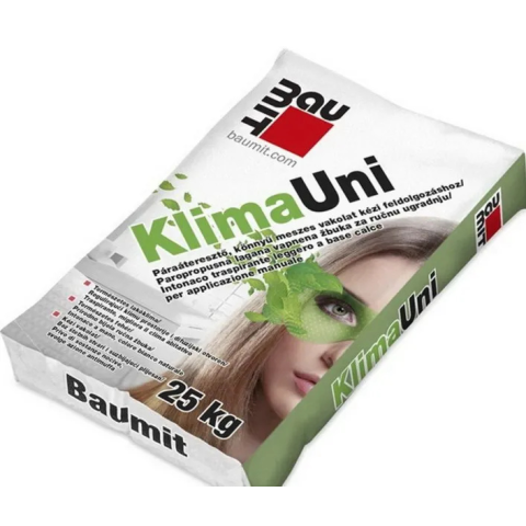 Baumit KlimaUni előkevert, páraáteresztő, hidraulikus kötőanyagú beltéri kézi könnyűvakolat.