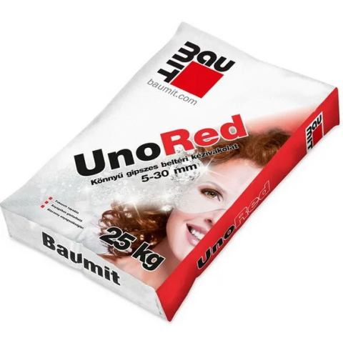 Baumit UnoRed előkevert perlittel könnyített gipszes beltéri kézivakolat 5 - 30 mm vastagságban.