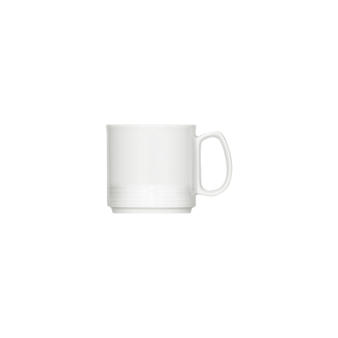 A Bauscher System fehér, egymásra rakható porcelánbögre 0,26 l űrtartalommal ideális a mindennapi használatra. Kiváló minőségű porcelánból készült, különös hangsúlyt fektetve a tartósságra, a funkcionalitásra és az időtlen dizájnra. Méretek: magasság 79 mm, átmérő 79 mm. A Bauscher német porcelángyártó, amely 1881 óta működik.