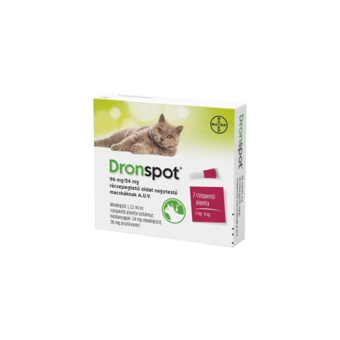 A Dronspot 96 mg/24 mg féreghajtó rácsepegtető oldat nagytestű macskáknak (5-8 kg között)