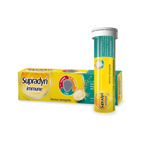 Hármas támogatás az immunrendszernek. Az új Supradyn Immune pezsgőtabletta magas dózisú C-vitamin, D-vitamin és cink tartalma révén hozzájárul az immunrendszer megfelelő működéséhez. Kellemes narancs ízben. Télen egy kis támogatás mindig jól jöhet az i