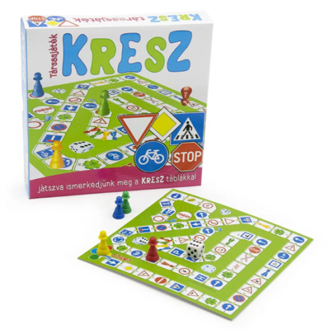1 kép BB Kresz tanuló társasjáték - oktató játék dobókockával és színes bábukkal Társasjáték