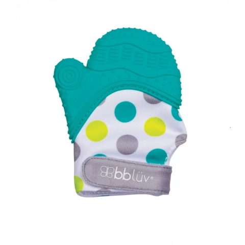 Bblüv Glüv kesztyűs rágóka: Glüv kesztyű rágóka élelmiszer minőségű szilikonból készült. A kesztyű rágóka része különböző felületű szilikonból készültek. Kesztyű része zörgős anyagú,így a baba hallását is felkeltheti. Biztonságos tépőzár a csukló résznél
