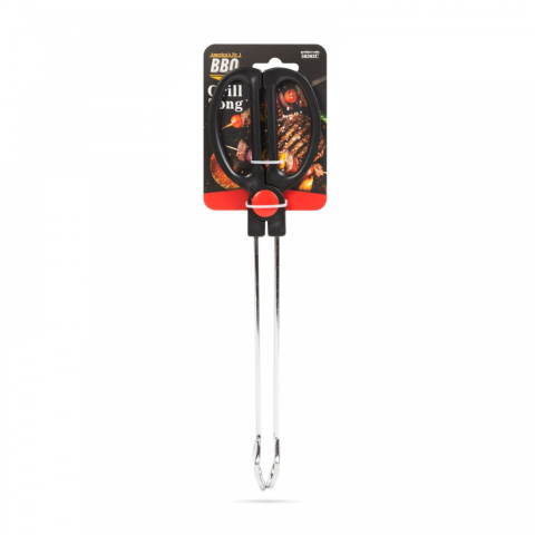 Grill csipesz - műanyag fogantyúval Minden grillezés alapkelléke a grillcsipesz, amely lehetővé teszi a húsok, zöldségek stabil fogását a forgatásuk során. A bordázott csipeszfej csúszásmentes felületet, az erős műanyag nyél pedig kényelmes kezelhetősé