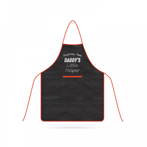 Grill kötény - gyerek méret - 44 x 60 cm - fekete Praktikus kiegészítője a kerti sütögetésnek. Megvédi ruháját a zsírfoltoktól. Poliészter anyaga vízlepergető hatással bír. A középen lévő nagyméretű zsebben mindig magánál tudhatja a legfontosabb BBQ ke