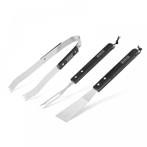 1 kép BBQ Grillező eszköz szett - 3 db-os - fa nyéllel