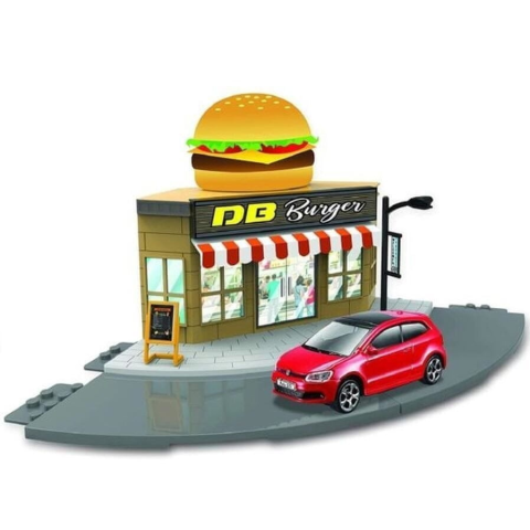 A gyorsétterem a Bburago City része, ahol a kis autókedvelő összeállíthatja egész városát. A csomag egy Volkswagen Polo GTI autót tartalmaz a Bburago márkától 1:43 méretarányban.
