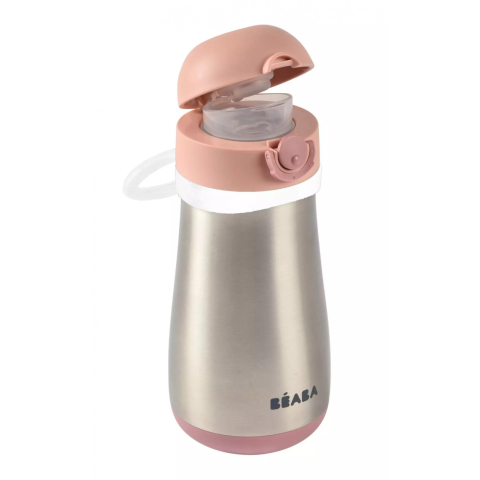 Rozsdamentes acél termosz, hogy csemetéd megtanuljon közvetlenül a palackból inni, szívószállal vagy anélkül!_x000D_ A tanulás utolsó szakasza._x000D_ Könnyen szállítható és bárhol használható!_x000D_ Könnyen nyílik: a palack szelepe az elülső gomb megnyo