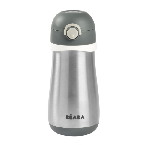 Rozsdamentes acél termosz, hogy csemetéd megtanuljon közvetlenül a palackból inni, szívószállal vagy anélkül! A tanulás utolsó szakasza. Könnyen szállítható és bárhol használható! Könnyen nyílik: a palack szelepe az elülső gomb megnyomásával nyílik. Rozsd