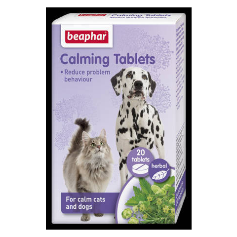 Beaphar Calming Tablets – Nyugtató hatású tabletták Kiegészítő takarmány kutyáknak és macskáknak A Beaphar Calming Tablets készítmény természetes módon segít abban, hogy kedvencünk nyugodtabb és kiegyensúlyozottabb legyen. Természetes, nyugtató hatású növényi kivonatokat tartalmaz (citromfű, komló, rozmaring, hársfavirág), bódító hatás nélkül. Ez a termék biztonsággal alkalmazható bármilyen fajtájú és korú kutyán és macskán. Az alábbi stresszt ok