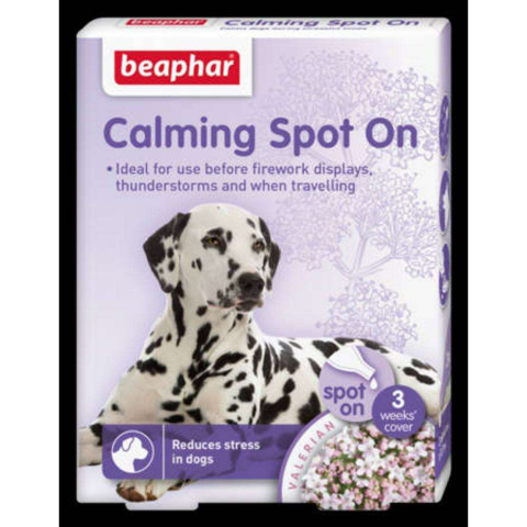 Beaphar Calming Spot On - nyugtató hatású spot on kutyák részére (3x0,7ml)A Beaphar nyugtató hatású spot on kutyáknak természetesen és hatékonyan nyugtatja kutyáját és csökkenti viselkedési problémáit. Természetes hatóanyaga a valeriana-kivonat. Egyszeri alkalmazásával akár egy héten át is biztosíthatja a nyugtató hatást. A spot on segíthet olyan problémák enyhítésében, mint a túlzott ugatás, engedetlen magatartás, a jelölgetés vagy a rongálás. A kész