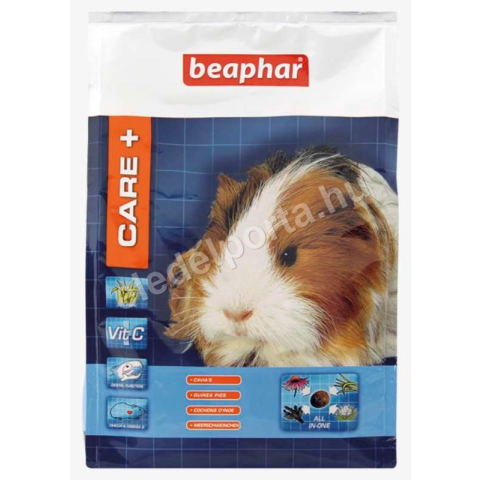 A Care+ Tengerimalac eledelben a különleges gyártási folyamat, (a nagy nyomás és a magas hőmérséklet) következtében a fehérjék könnyen emészthetőek, a táplálék tiszta és egészséges az alapanyagokban esetleg jelen lévő kórokozó baktériumok, penész és vírusok elpusztítása révén.Mivel a táplálék minden egyes extrudált darabja azonos összetevőkből áll, megelőzhető az egyoldalú takarmányozás, s biztosítva lesz, hogy az összes szükséges beltartalom elfogyasztásra kerül. A tengerimalacok a többi prémes állattól eltérően nem képesek C vitamint termelni, ezért a Care+ Tengerimalac eledel C-vitaminnal dúsított. A Care+ alacsony zsírtartalmú, megfelelő arányban tartalmaz Omega 6 és Omega 3 zsírsavakat. Természetes összetevők (Echinacea, Spirulina-alga, és Yucca Schidigera) és FOS*, ill. MOS** együttesen kerül hozzáadásra. Az eledelben lévő ásványok fehérjeburka segíti azok felszívódását. *FOS- frukto-oligoszacharid ** MOS – mannan-oligoszacharid Összetevők: gabonafélék, növényi származékok (pl. mannan oligoszacharid, frukto-oligoszacharid, Yucca schidigera kivonat, kasvirág kivonat), növényi fehérjekivonatok, magvak, ásványi anyagok, zöldségfélék, élesztők, algák. Beltartalom: nedvesség: 9,2%; Nyersfehérje: 20%; nyersrost: 22%; nyerszsír: 4%; hamu: 5,9%; Ca: 0,63%; Mg: 0,2%; Na: 0,51%; K: 0,97%; P: 0,5%; A vitamin: 48,000 IE/kg; D3 vitamin: 1,440 IE/kg; E vitamin: 109 mg/kg (50%-ban D-alfa-tokoferol acetát formában); C vitamin: 1,100 mg/kg; Cu: 26.7 mg/kg (réz-aminosav kelát és réz(II) oxid formában)