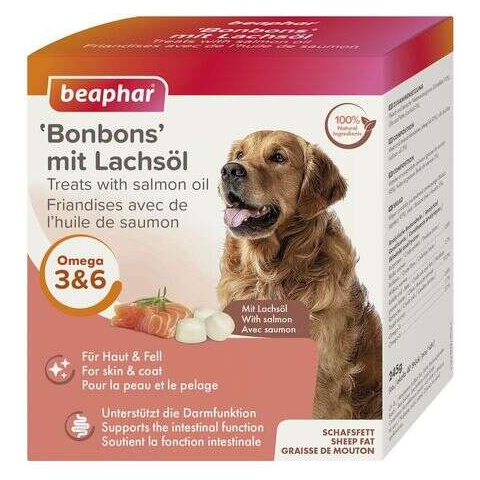 Tedd fel kérdésed a(z) Beaphar lazacos és birkafaggyús bonbon kutyáknak 245 g termékről!