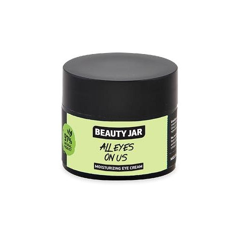 Szemkörnyékápoló - hidratáló és szem alatti duzzanatok / karikák elleni, természetes, vegán összetétel, természetes, BIO, női, zsíros, normál, kombinált, száraz és érett bőrre ajánlott, űrtartalma 15 ml A BEAUTY JAR All eyes on us szemkrém hialuronsavval és ázsiai gázló kivonattal gazdagított. Használható napközben, de éjszakai mélyápolásként is. A krém kellemesen hidratál, csökkenti a karikákat és a