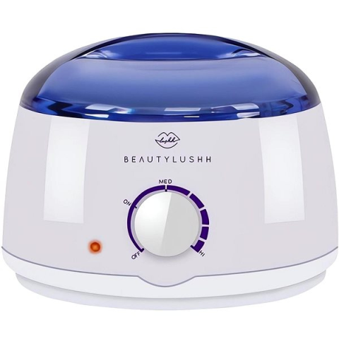 Gyantamelegítő - amihez használható: viasz granulátum, legfőbb funkciói: termosztát, hőmérséklet megtartása és teljesítménybeállítások, 400 ml űrtartalom, tápellátás: hálózati, teljesítménye: 100 W, színe: fehér és kék, mérete: 13,5 cm×18 cm (ma×sz), tömege: 540 g, tápkábel hossza: 100 cm A Beautylushh 22832 gyantamelegítő 400 ml-es fém edénnyel különösen alkalmas cukrospaszta melegítésére, de ugyanúgy használható önmagától lehúzható gyanták
