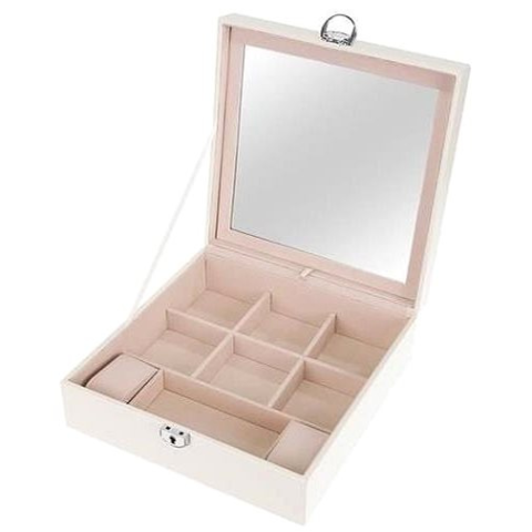 Ékszeres doboz - fa, doboz, tükör, fedeles, zárható, 2 szintes, mérete 9 × 25,5 × 25,5 cm (Ma×Sz×Mé), fehér kivitel A strapabíró Beautylushh ékszeres doboz nagyszerű választás ékszereid és kiegészítőid biztonságos tárolására. A fa ékszerdoboz fából készült, ezért természetes szépségével és tartósságával tűnik ki. A