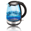 üveg vízforraló 1,7 literes űrtartalom Rozsdamentes rejtett fűtőbetét 2000 Wattos teljesítmény Kék LED-es belső világítás 360°-ban körbeforgatható talp Forrás után automatikus kikapcsolás Szárazon működés elleni védelem Túlmelegedés ellen