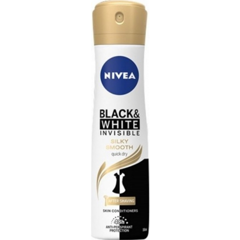 A Nivea Black & White Invisible Silky Női Deo Spray az elegancia és a hatékonyság tökéletes kombinációja. Speciális formulája megakadályozza a fehér foltok kialakulását a fekete ruhákon és a sárga foltok megjelenését a fehér ruhákon, miközben 48 órás izza