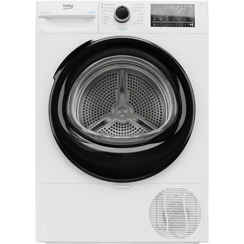 Szárítógép - gőz szárítóprogrammal, kondenzációs, szabadonálló modell, energiaosztályú C, szárítási hatékonysága B, maximális szárítási mennyiség: 8 kg, -es zajszint 64 dB, energiafogyasztása 96 kWh/100 mosási ciklus, FragranceDos technológiával, SensitiveDrying technológiával, hőszivattyú, kijelző, belső világítás és gyerekzár funkcióval, mérete 84,6 × 59,8 × 60,7 cm (V׊×H), 44 kg tömegű A gazdaságos és pontos szárítás a BEKO BM3T48249W fő