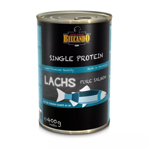 Szín lazachús 400g Magas értékű, fajtánként válogatott színhús konzervHat féle válogatott húsfajtában kapható, további adalékok nélkül. BELCANDO® Mix it GF-vel elkeverve kiválóan alkalmas a kizárásos diétára vagy táplálék-összeférhetetlenség esetén hosszútávú etetésre.  SINGLE PROTEIN (egy fajta fehérjés) konzervek Magas értékű, fajtánként válogatott színhús konzerv Ideális a BARF etetéshez. Kizárásos diéta esetén fehérjeforrásként is id