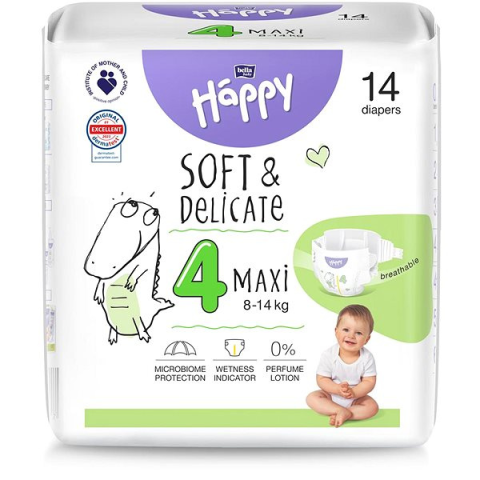 Eldobható pelenka - hagyományos pelenka, méret 4, gyermek súlya 8 - 14 kg, 14 darab a csomagban, ergonómikus abszorbens mag, pelenkakiütés elleni védelem és parfümmentes, anyaga cellulóz, állatkás motívum Hogy a gyermeked elégedett legyen, szüksége van rá, hogy száraznak érezze magát. A hagyományos dizájnú Bella Happy pelenka nem fogja korlátozni a kisbabát és biztosítja neki a szükséges kényelmet. A f
