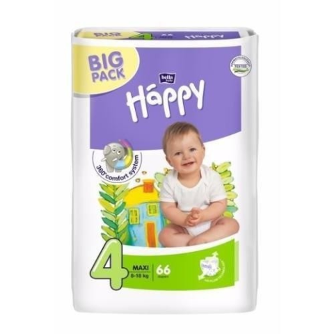 Bella Happy Maxi Big Pack pelenka (8-18kg) x66 Bella Happy Maxi Big Pack pelenka (8-18kg) x66 A Maxi méretet 8-18 kg közötti súlyú gyermekek számára ajánljuk. Az elasztikus részek maximális komfortot biztosítanak a már ülni és kúszni-mászni tudó babák