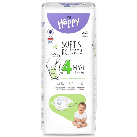 A Bella baby Happy Soft & Delicate eldobható pelenka légáteresztő külső borítása biztosítja, hogy a kicsi bőre a pelenka alatt is folyamatosan szellőzzön, ami csökkenti a bőrirritáció kialakulásának lehetőségét. A bella baby Happy Soft & Delicate pele...