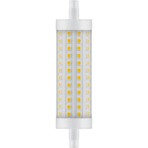 A szép formájú, R7S-es foglalatú, cső alakú Osram LED-izzó hosszú, 15 000 órás élettartammal rendelkezik. Nagy teljesítményű, 13 W-os LED-izzó nagyon jó világítási hatékonysággal A műanyag konstrukciójú izzó 1521 lm fényteljesítménnyel és 13 W energiafogyasztással rendelkezik. Összehasonlításképpen: egy hagyományos villanykörte 100 W-ot fogyasztana. A fent említett értékek remek világítási hatékonyságot biztosítanak. 230 V-os tápfeszültséggel műk