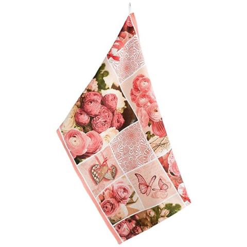 Konyharuha - pamut, alkalmas edények tisztítására, akasztóhurok és mosógépben mosható, 60 fokon mosható, méretei 50 × 70 cm (szé × h), fehér és rózsaszín kivitel, virágos motívum A dizájnos BELLATEX 50 × 70 cm, 303, patchwork rózsaszín termék főbb jellemzői A megbízható BELLATEX edényekhez való konyharuha megbízhatóan felszívja a vizet, és nem hagy karcolásokat vagy nyomokat A