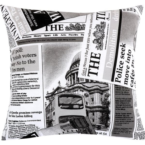 Bellatex 55/566 EMA párnahuzat, 45×45 cm, újság, fekete-fehér lakástextília termékleírás