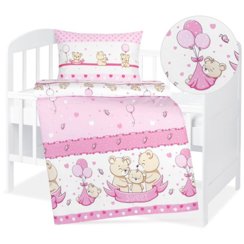 1 kép Bellatex Agáta 90/083 gyerek ágyneműhuzat, mackó család, rózsaszín, 90×135, 45×60