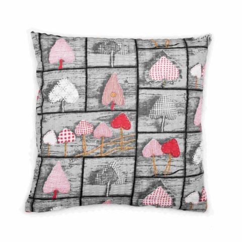 Bellatex krepp párnahuzat, 40×40 cm, szürke-piros szív (4785)