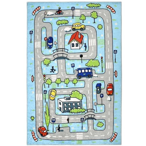 Szőnyeg - gyerekszőnyeg, csúszásgátlóval, méretei 100 × 150 cm (szélesség × hossz), anyaga polipropilén, kék kivitel A dizájnos BELLATEX gyerek szőnyeg mérete 100 × 150 cm (Sz×H). Mechanikai kopásnak ellenálló, hosszú élettartamot biztosító polipropilénből készült. A csúszásgátló alsó rétegnek köszönhetően nem mozdu