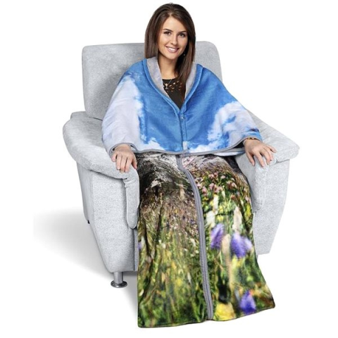 TV nézős takaró - ujjas, egész éves, kötött, takaró anyaga poliészter, mérete 150 × 200 cm, mosható, minta természet, kék, szürke és zöld kivitel A kitűnő BELLATEX s.r.o. pléd rengeteg helyzetben lesz a hasznodra. Kellemesen megmelegít, és megerősíti az otthonod meghitt hangulatát. Elkészítéséhez minőségi anyagot használtak, amely a kiváló poli
