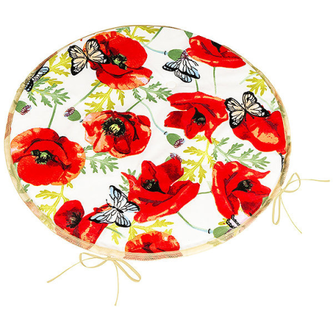 Ülőpárna - kerek, anyaga: poliészter és pamut, mérete: 2 × 40 × 40 cm (Ma×Sz×H), fehér, zöld és piros színű