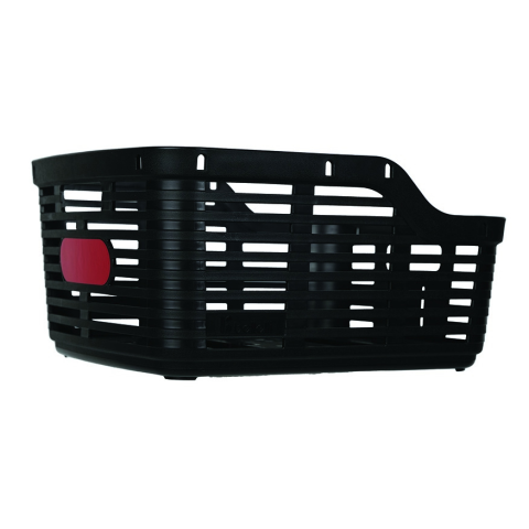 Ultrakönnyű, nagy méretű műanyag kosár fényvisszaverővel és hátsó rack rögzítőkkel.