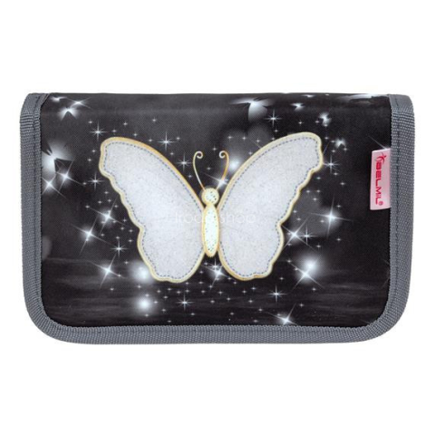 Tolltartó, klapnis, cipzáras, BELMIL Amazing Butterfly, fekete, pillangó Egyrészes, 2 klapnis tolltartó rekeszek: 1 belső rekesz + 2 klapni férőhely: 27 db ceruza + 1 vonalzó + 1 radír + 1 hegyező anyag: poliészter méret: 14 x 20,5 x 3,5 cm aján