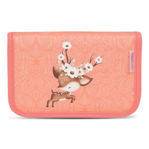 Tolltartó, klapnis, cipzáras, BELMIL Cute Doe, barackszín, őzike Egyrészes, 2 klapnis tolltartó rekeszek: 1 belső rekesz + 2 klapni férőhely: 27 db ceruza + 1 vonalzó + 1 radír + 1 hegyező anyag: poliészter méret: 14 x 20,5 x 3,5 cm ajánlott 6-9