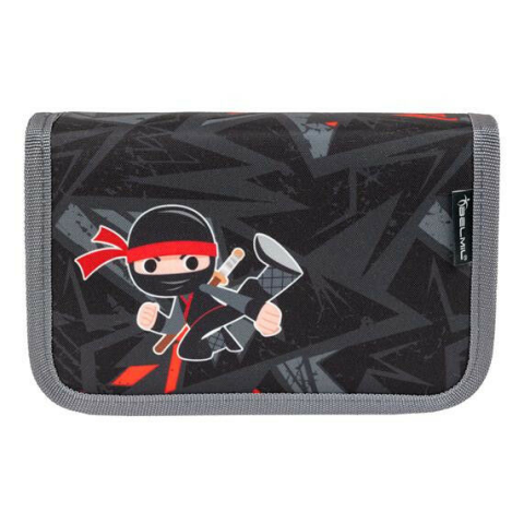 Tolltartó, klapnis, cipzáras, BELMIL Ninja, fekete, nindzsa Egyrészes, 2 klapnis tolltartó rekeszek: 1 belső rekesz + 2 klapni férőhely: 27 db ceruza + 1 vonalzó + 1 radír + 1 hegyező anyag: poliészter méret: 14 x 20,5 x 3,5 cm ajánlott 6-9 éves