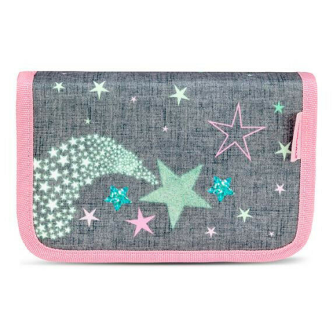 Tolltartó, klapnis, cipzáras, BELMIL Shine Bright, szürke-rózsaszín, csillagok Egyrészes, 2 klapnis tolltartó rekeszek: 1 belső rekesz + 2 klapni férőhely: 27 db ceruza + 1 vonalzó + 1 radír + 1 hegyező anyag: poliészter méret: 14 x 20,5 x 3,5 cm