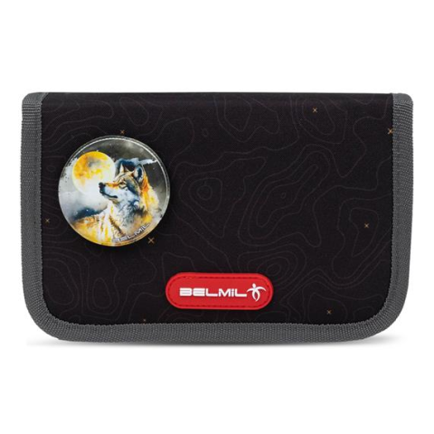 1 kép BELMIL Tolltartó, klapnis, cipzáras, "Wolves Sand", fekete, farkas (BL3358821F) (BL3358821F)